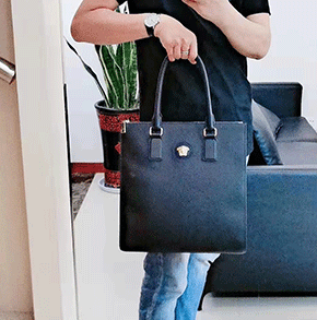 产品名称:范思哲男士黑色皮革美杜莎头像手提包
