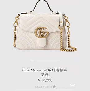 产品名称:古驰 Marmont系列手提款 白色mini邮差包